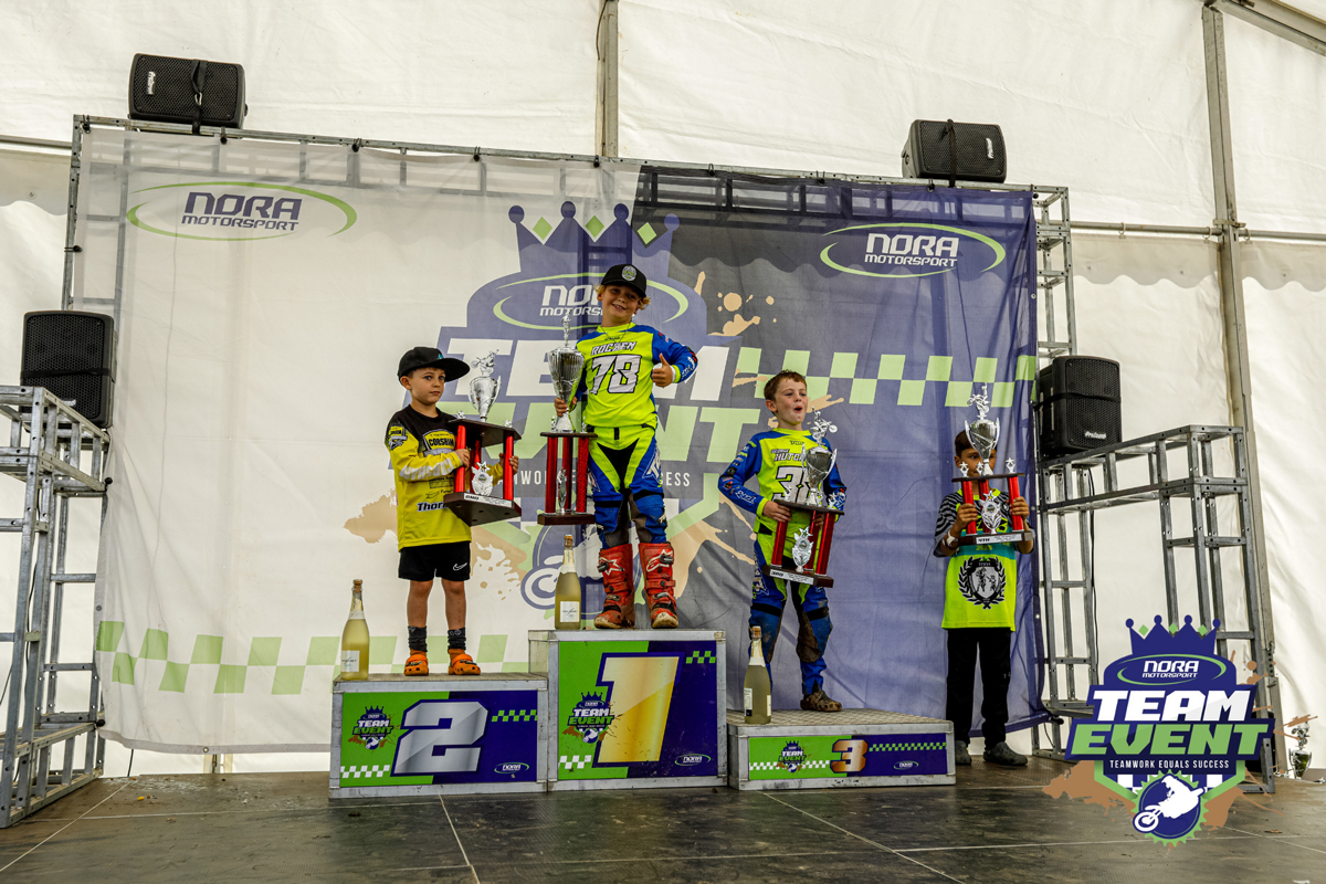 It was Bobby Farmer taking the overall for the Big Wheel 85cc class with 142 points. Second went to Sebastian Brown and third went to Toby Bond. Taking the class overall was Southerly MXC with an impressive 472 points.
