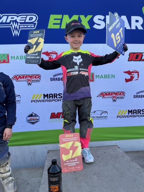 Maddox Knifton looked set for a clean sweep, but a crash opened the door for Theo Hancock, who snatched a race win and second overall. Harri Fisher, on his factory Amped EMX Sparks 10Ten MX machine, secured third. Cellan Rees and Blake Thomas completed the top five.