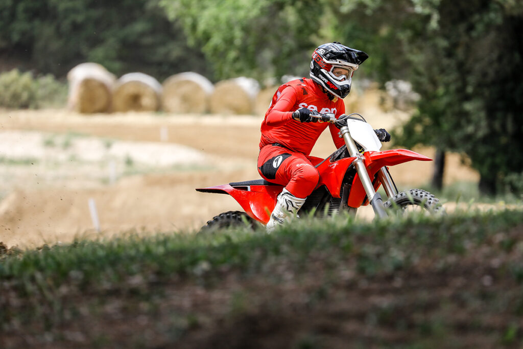 “Obviously not having to worry about gears takes another element away and you can focus more on your lines and technique, it’s also nice to know you’re not going to miss a gear on take off! The other thing that was weird at first was not having a clutch lever. You kind of get used to not having a gear lever pretty quickly but it feels odd not having the clutch lever, especially for me because I cover the front brake and clutch lever with my fingers the majority of the time. Particularly in Supercross where you have to trigger off step on’s and step off’s and rhythm sections. I was riding around at first with my finger sticking out like a Champagne Charlie! But once I got used to that it wasn’t a problem, because the power is right there with a blip of the throttle it’s actually easier and of course less chance of getting it wrong by using a clutch to get the revs up. I was landing and then giving it a quick twist and ‘bang’ it just hooked up and sent me over the next section easily. At first too easily and I was over jumping stuff because it didn’t have that little bit clutch lag and drag. Honestly it was so much easier to do everything out on the Supercross track compared with petrol bike. Without the engine braking you kind of pay more attention to the brakes and they’re good, maybe more so because the minute you’re off throttle there’s less resistance so you almost get a better feel with them really.”