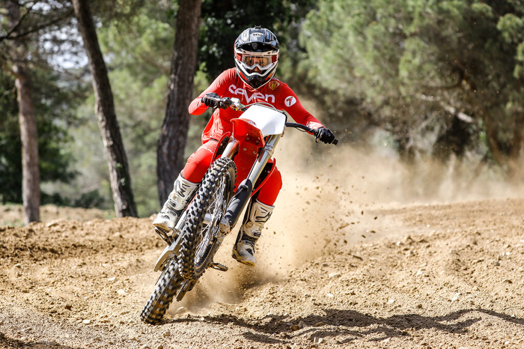 We’ve chosen for the most successful tire brand in FIM Motocross World Championship history: Pirelli. The option of many race teams in MXGP is also our preference and the Scorpion MX32’s carry 110/90-19 dimensions on the rear and 80/100-21 for the front wheel.