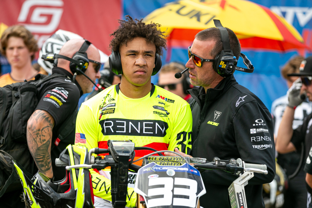 “It’s been another historical moment for our journey with Triumph with both riders being the first two guys to ride in an AMA outdoor National for the brand. The day went well, we improved during qualifying and had a good first moto. If the track hadn’t been smoothed out so much I think both guys would have probably done better.