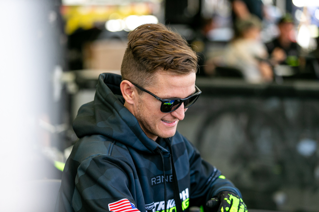 When the gate dropped for the huge contingent of riders, Swoll led the charge for Triumph Racing in 10th with Savatgy a few spots behind in 13th at the first turn. Once the pack settled and the riders found their rhythm, Savatgy and Swoll soon moved up the order to sit in sixth and seventh. With a top five as his mission, Joey spent most of the moto chasing down Chance Hymas.