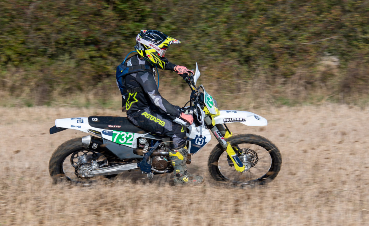 To “celebrate” the last race of the year, Lincolnshire Enduro Club put on one of the longest tracks in their calendar to end 2021. Taking place in perfect weather at Dembleby Heath near Grantham, the 130 riders faced a well sorted eight miles of stubble fields, a small quarry area, and a few water splashes thrown into the mix. The venue is now well known for its super fast pace, with only minor excursions into the local woodland to slow the pace this time.