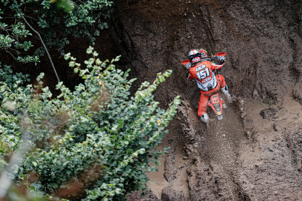 Saturday’s overnight rain added some extra spice to the racing on Sunday morning, with the soft boggy ground on the ACERBIS Cross Test catching out numerous riders. GASGAS Factory Racing’s Andrea Verona was one rider to get stuck in a deep rut. The Italian lost one minute digging himself free, but managed to race his way back to third in the Enduro2 class and keep his five-year podium streak intact. Incredibly, the Italian has never missed a class podium in the last five years. Thanks to the GASGAS team for reminding us of that amazing stat!