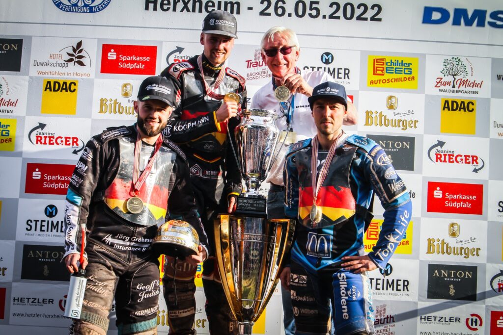 Germany are the new Long Track of Nations champions after a dramatic day’s racing at Herxheim on Thursday. On the traditional Fathers Day meeting some 12,500 spectators were present to see the home team triumph.