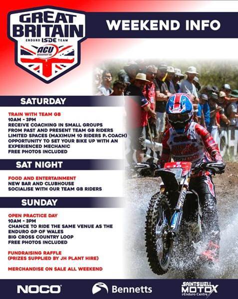 In conjunction with Saintswell MX/Enduro Centre there will be a weekend of fundraising on Saturday and Sunday 15th and 16th June to help get Team GB to the ISDE in Spain.