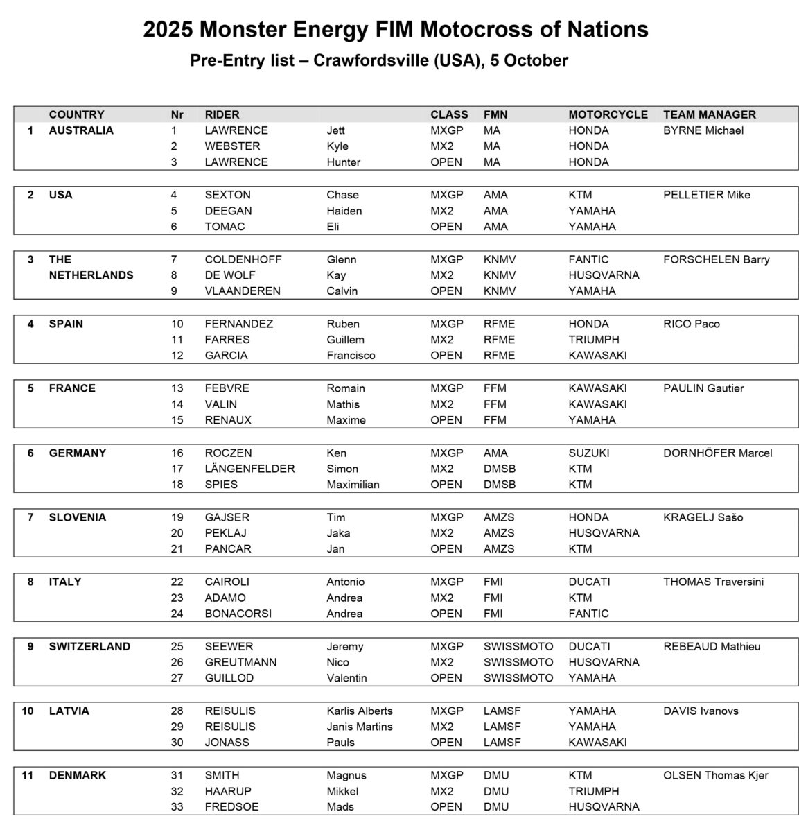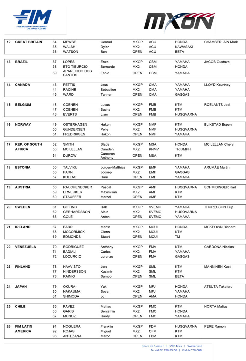 Of course, these are Pre Entry lists and Team GB haven’t officially announced their line-up, and we know that Conrad Mewse is set to ride a 250 at the final round of the 2025 British Motocross Championship, so we could well see some changes.