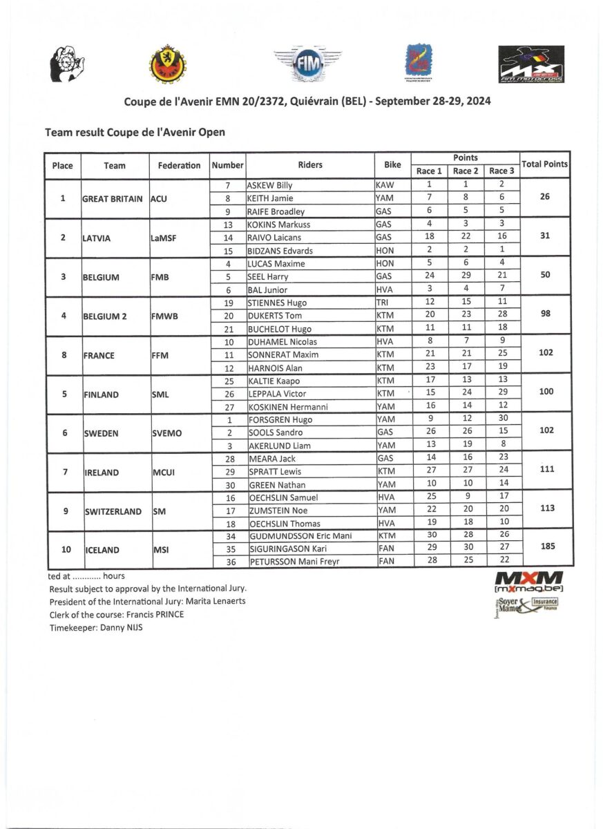 Team GB retained the Coupe de l’Avenir Motocross title in Belgium with a fantastic win in the 2024 edition of the event, which is hosted annually in Belgium and is essentially the Under 21 Motocross of Nations in some respects, with the competing Nations choosing their country’s best young riders.