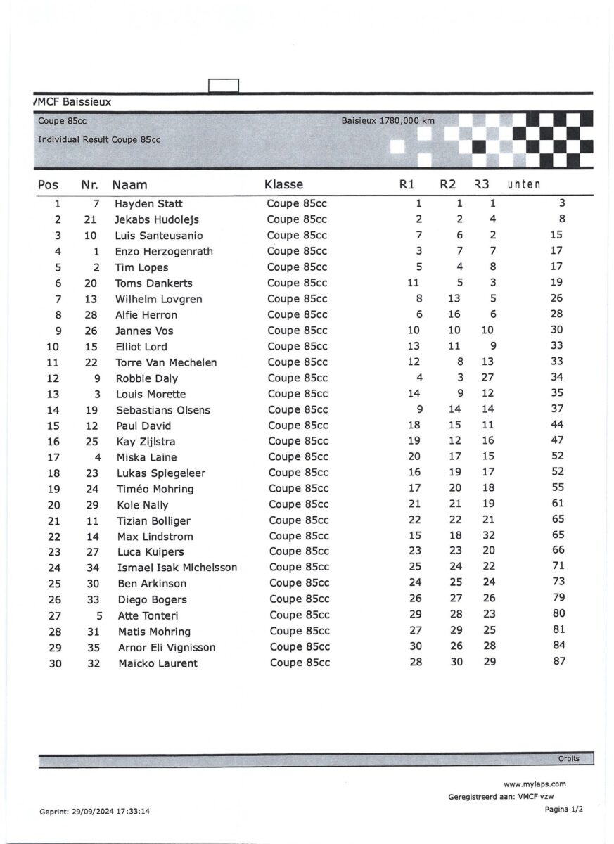 Our riders were on fire in the 65cc category with newly crowned British champ Cohen Jagielski storming to a maximum of three wins from three, backed up admirably by John Slade with a 4th and a 5th and Jett Gardiner with a second and a seventh, which saw them take the team win for their class ahead of France in second and Latvia in third.