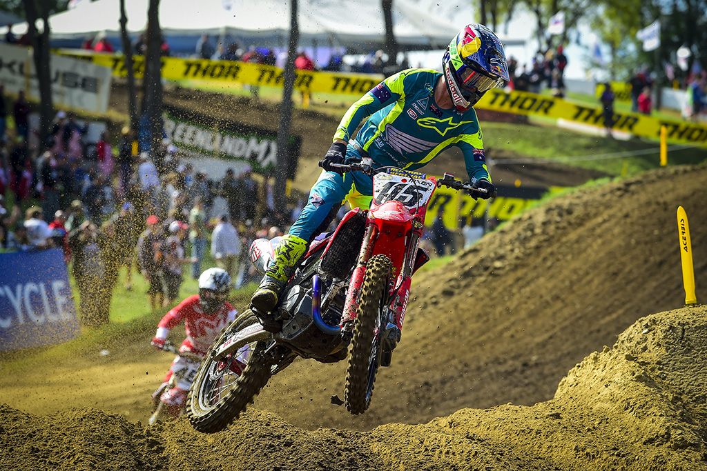 Meanwhile, Team USA’s Eli Tomac started down in 10th, though was able to make several passes in the opening laps to edge closer to the top five.