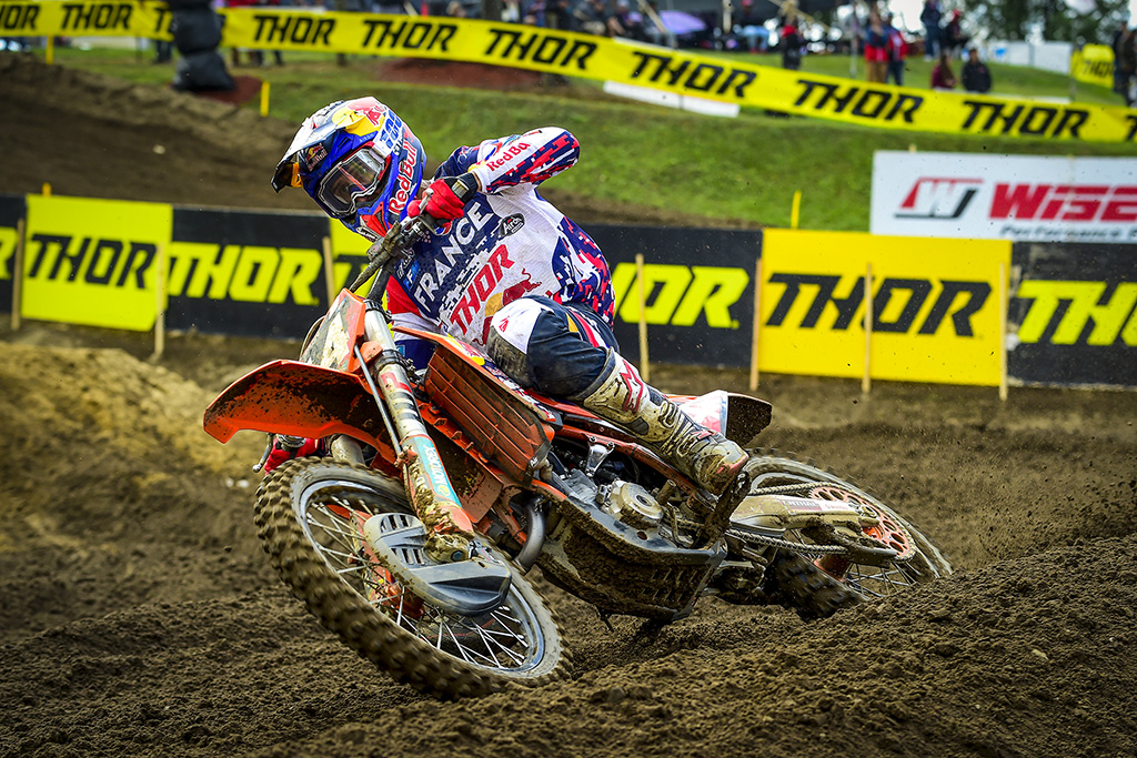 Dylan Ferrandis: “It was a very weird moment, it had never happened to me before. Before the finish jump, my leg went in the back of my bike and was stuck in the wheel, so my knee was completely stuck. I had to stop, push the bike in reverse and then get my leg free and go. I don’t know why this happened, but these sorts of things always happen at the Motocross of Nations… The expectations for tomorrow are very easy, we want to win and we will try everything to win. The battle has already started against Team USA and I think this will be really interesting. We will give everything, as everybody, but I think we have a strong team to do it”.