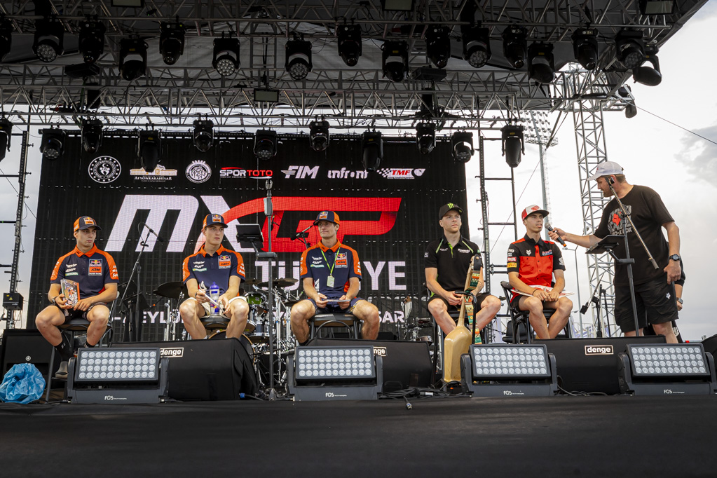 Following yesterday’s racing action, the paddock and meet-and-greet session at the Afyon MotoFest brought the riders even closer to the Turkish fans. Spectators enjoyed a unique opportunity to hear Kawasaki Racing Team Romain Febvre, Red Bull KTM Factory Racing Sacha and Lucas Coenen and Simon Längenfelder and Honda HRC Valerio Lata interviewed live on the main stage, before lining up to collect signed posters and share memorable moments together.