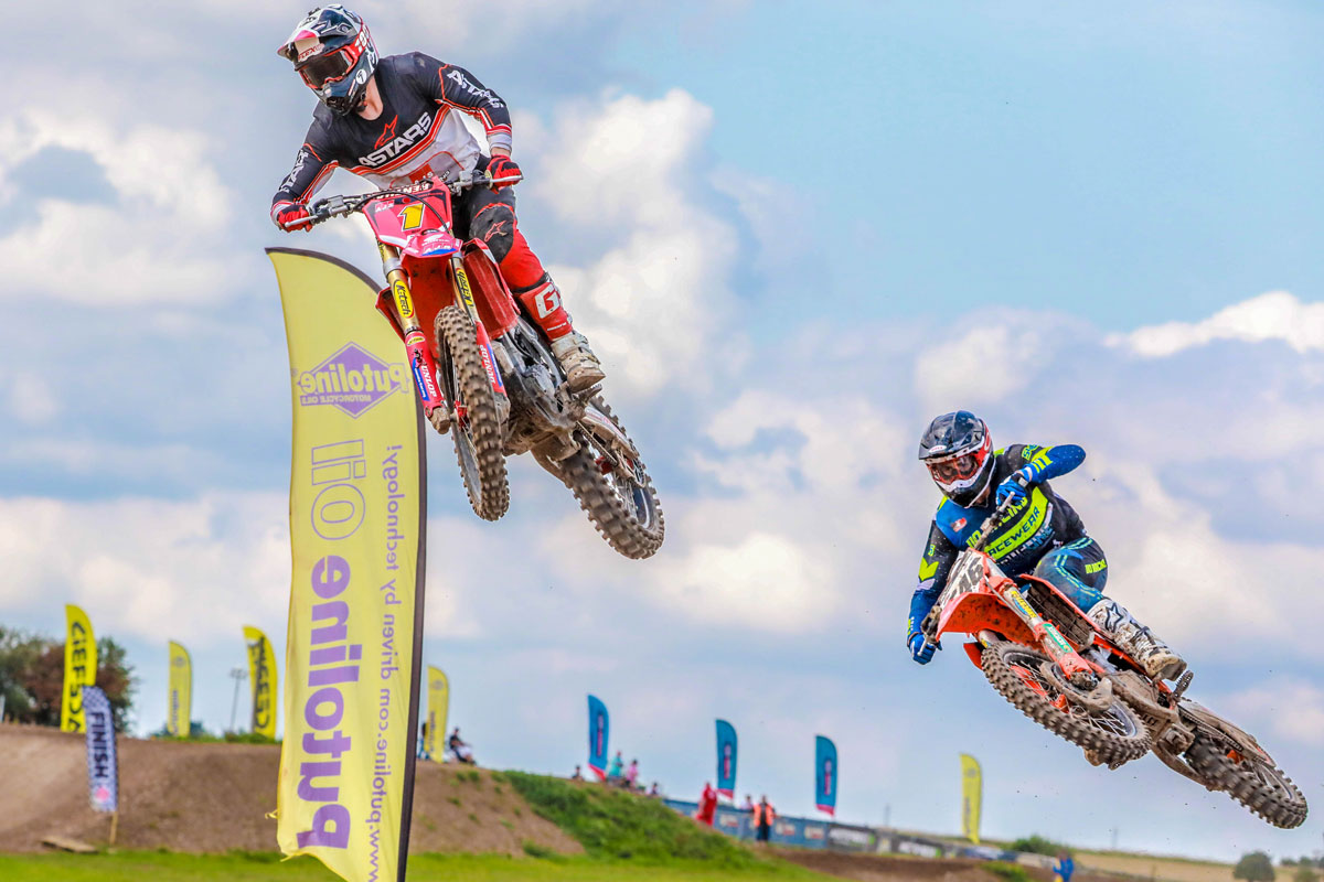 First up were the Craigs Motorcycles sponsored MX2 class, and wildcard rider Louis Vincent took his KTM to a maximum points haul en route to the top step of the podium ahead of Wulfsport Suzuki man Logan Wilcox, who had a strong showing at Cusses and took home the runner up spot by just one point from 2022 runner up Dominic Newbury who was making a return to the series as a wildcard aboard a Kawasaki. Lee Sealey clinched the championship after the first race on Sunday and proudly displayed his number 1 plate in the final moto on his way to fourth overall ahead of Joel Fisher.
