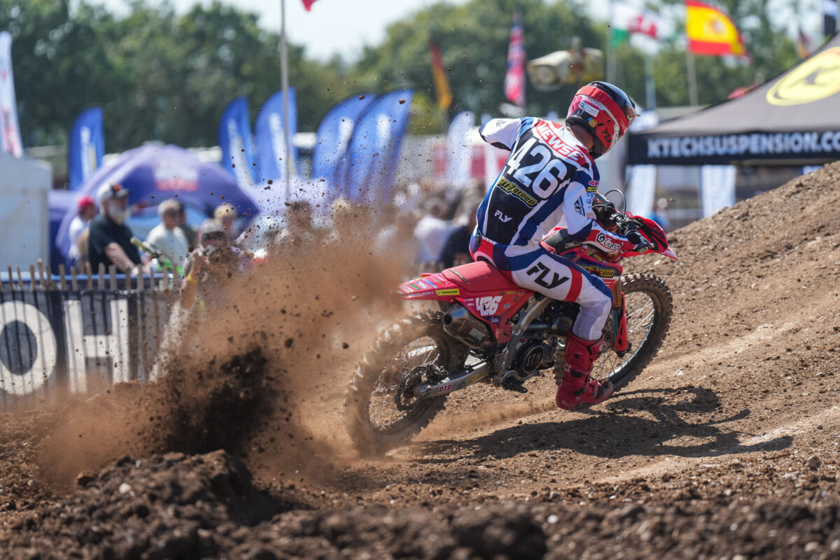 The Cornish round of the British MX1 championship was the toughest ask yet for red plate holder Conrad Mewse but he staged two determined rides to once again win both motos. That meant he clinched the overall in Sunday’s British MX1 championship round, maintaining his perfect season.