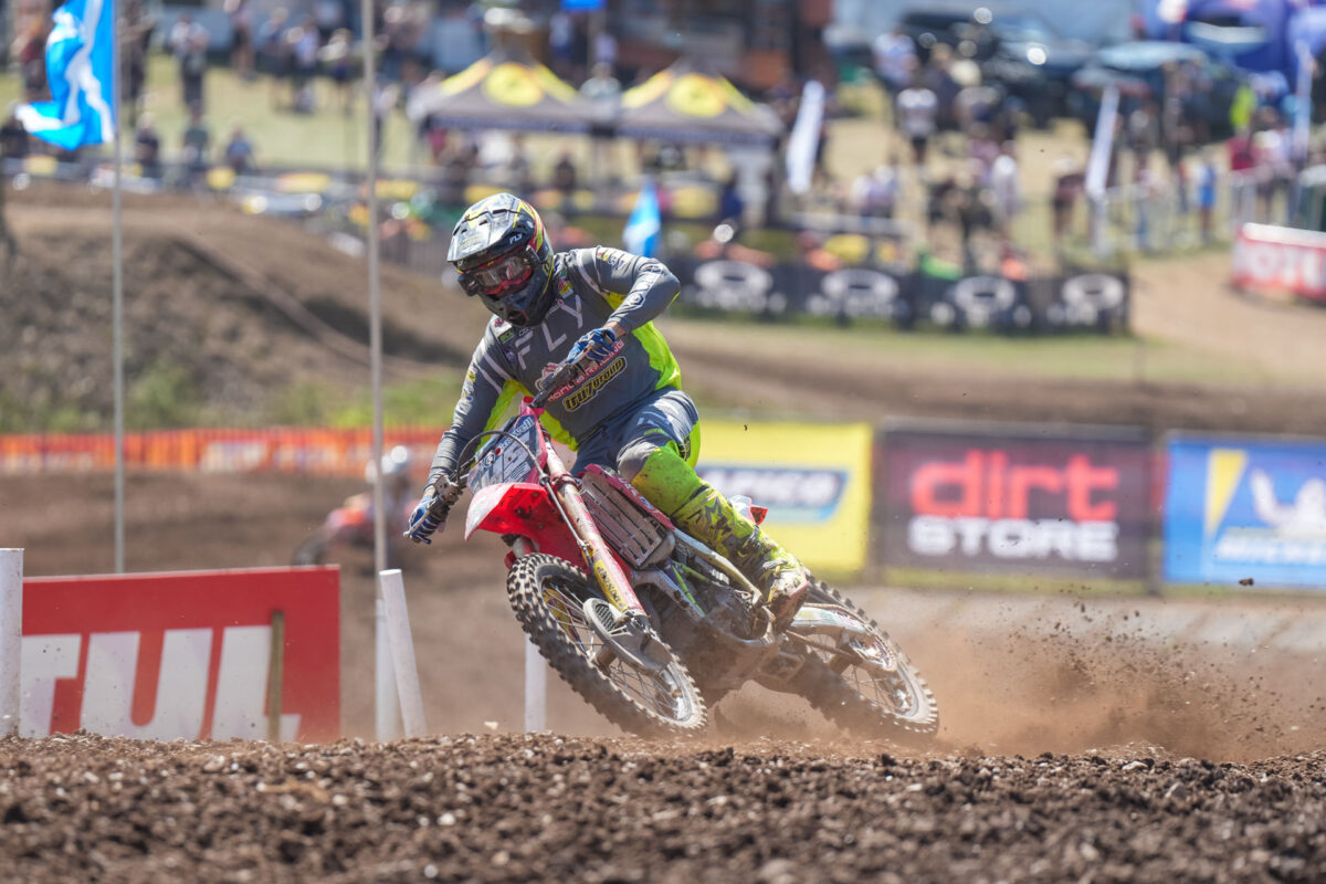 “In the MX2 class, Jake was always on the back foot after qualifying but rode incredibly well on a track he isn’t particularly a massive fan of. He just went quicker as the day went on and was just incredible in that second race to come through. He doesn’t get the chance to ride as much any more as he works full time running the Tru7 Group, so it’s a huge credit that he can still ride so well and so fast.”