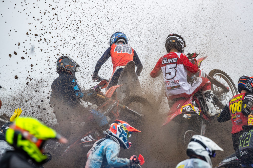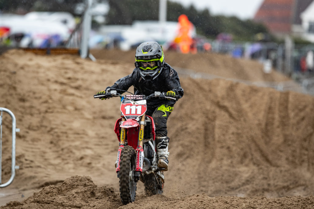 Next up on the track in the UK’s biggest Offroad motorsport event was the 65cc riders. Aged seven up and the future of the sport took to the spectacular circuit. Taking the chequered flag was the 111 machine of Alfie Geddes-Green, who completed 18 laps in the one hour and 15 minute race. There was some tremendous racing from all the junior 65cc riders competing. Jenson Severn was your second-place rider who battled hard throughout the moto in the wet sand course. Third spot went to James Gittins Jones, with William Evans and Sean Smout rounding out the top five.