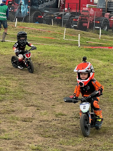 A new addition for this weekend was the Wild Cards E Drive Balance Bike class, which featured a full lineup and delivered fantastic racing. Theo Hancock emerged victorious, riding with flair and sporting one of the coolest mirrored lenses around. Emy Gardner held her own against the boys, putting in superb starts and riding to an impressive second overall. Cian Bradshaw was among the fastest all weekend but struggled to keep his bike upright, finishing third overall. It was thrilling to watch, with riders like Seb Carr in green camo gear and Parker Jay Lock-Denny pushing hard throughout the races.