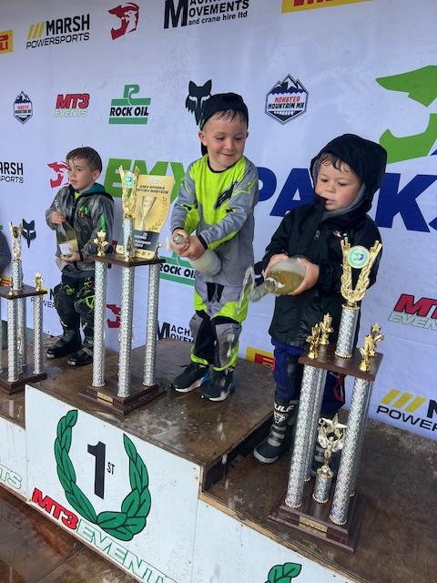 In the E Mini class, Charlie Needs made an emphatic comeback after a tough round at Monster Mountain. He took a perfect six wins from six races to dominate the weekend. Grayson Blake Martin was steady all weekend, securing second overall and keeping his championship aspirations alive with consistent rides. Cooper Dunstan rode brilliantly to take third, and Bear Todd showed grit to finish fifth overall after a weekend of hard-fought races. The determination of these young riders was evident, and they delivered some of the weekend’s most inspiring performances.