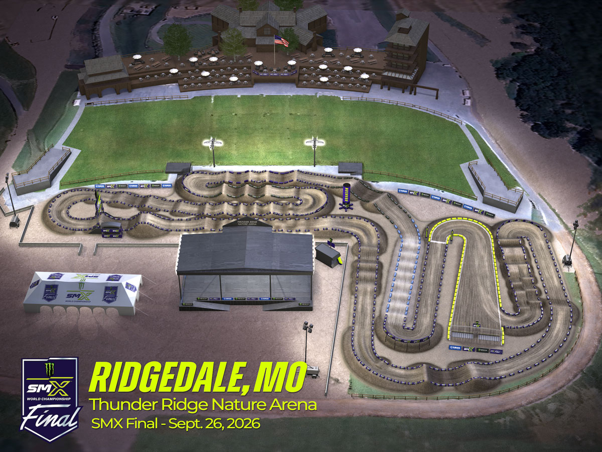 The Monster Energy SMX World Championship will culminate in a special Final at Thunder Ridge Nature Arena in Ridgedale, Missouri, which has already drawn rave reviews as one of the most picturesque and jaw-dropping venues in North America. Set within a stunning natural amphitheater, Thunder Ridge Nature Arena presents a one-of-a-kind outdoor experience that promises to create unforgettable memories by combining the natural beauty of the Ozarks with the striking architecture that seamlessly integrates into the surrounding environment. The SMX World Championship Final will offer world-class racing alongside a premier stay at Big Cedar Lodge, the Official Accommodations partner, featuring championship-level golf, exceptional restaurants and an immersive outdoor experience across its iconic resort. The natural terrain at Thunder Ridge Nature Arena will provide the most Motocross-inspired track design of this year’s postseason with natural elevation, rough sections, and one-of-a-kind viewing options close to the track that fans have come to expect.