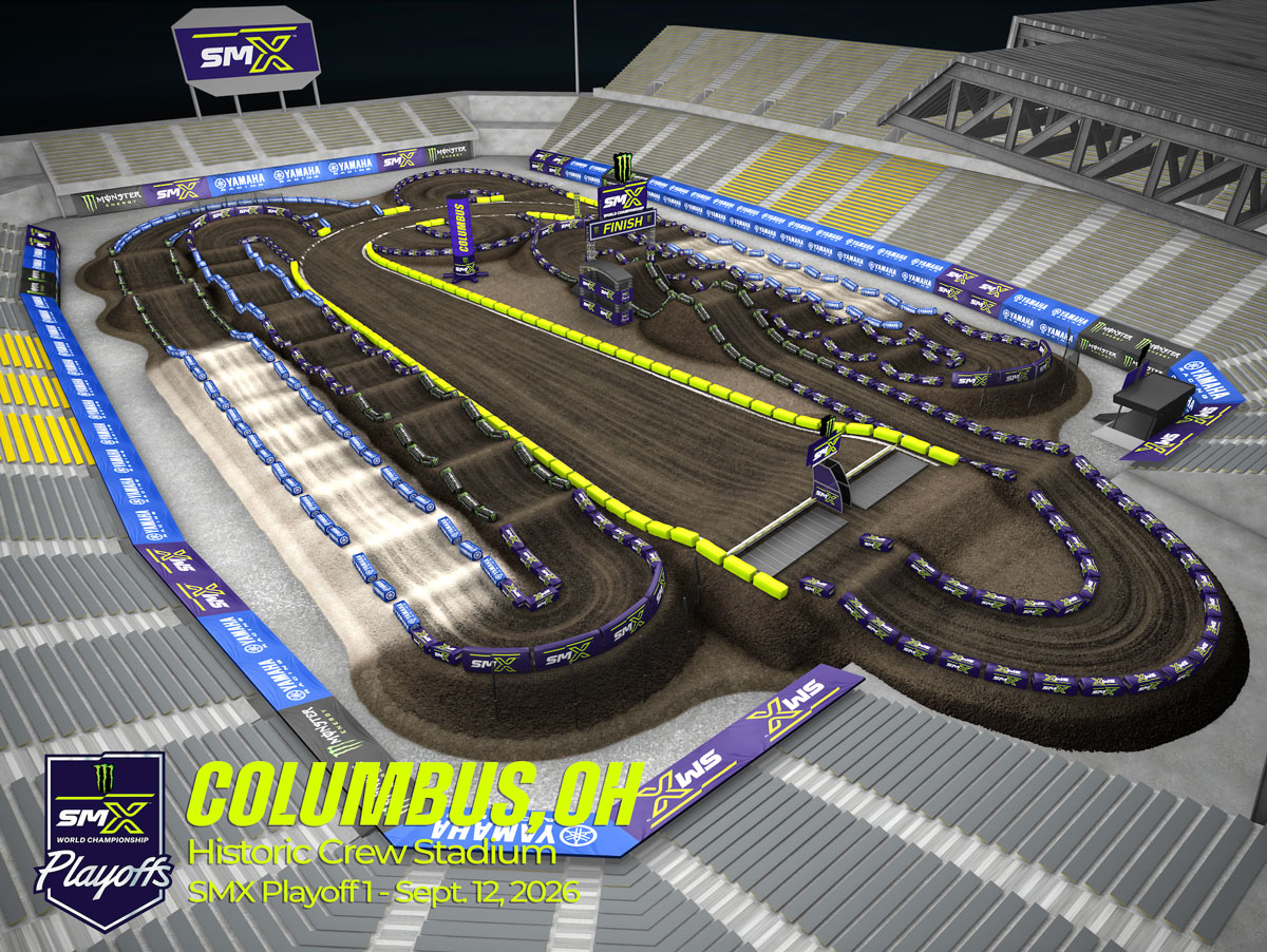 Columbus sits at the heart of the Midwest, a region long known for its passionate motorsports fan base and deep grassroots racing culture. Ohio has produced generations of riders and racing fans, making Historic Crew Stadium a natural fit for the SMX World Championship Playoffs. Every square foot of the venue’s expansive floor space will be utilized to create a unique SMX track layout that will include a large contingent of sand; an elevated start and use of an existing stage built into the stands.