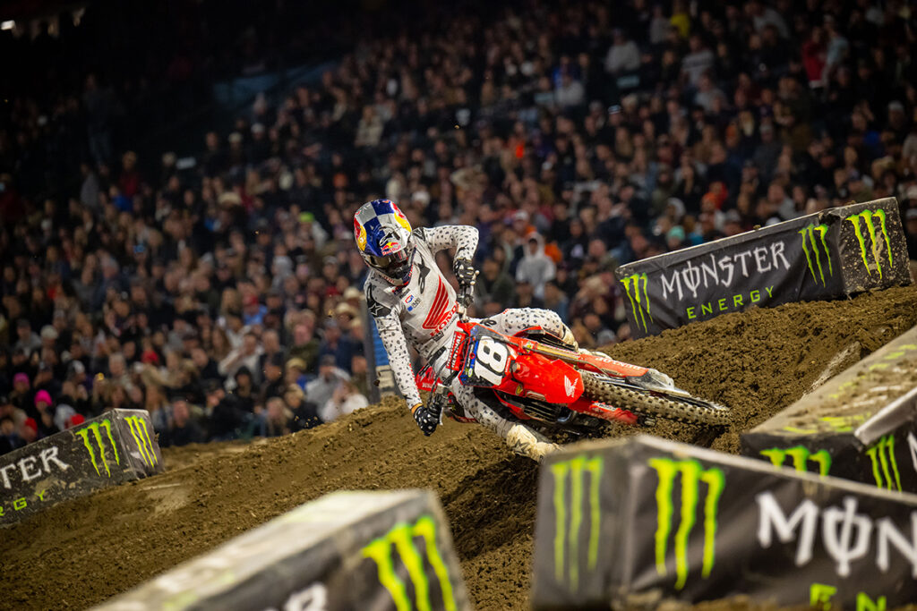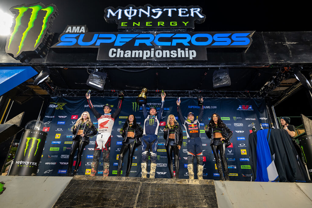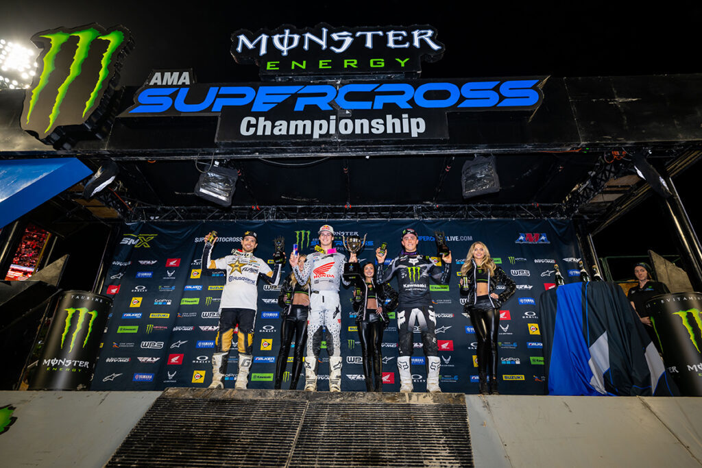 With two minutes to go, Tomac took back the front spot. As the clock ticked past one minute, Webb reached third position. Webb nabbed one more spot, taking second from Sexton just as they crossed the white flag. Tomac took the checkers a lap later, earning his first Anaheim 1 victory and starting his title defense with a win and a display of speed that separates him as the rider to beat this season.