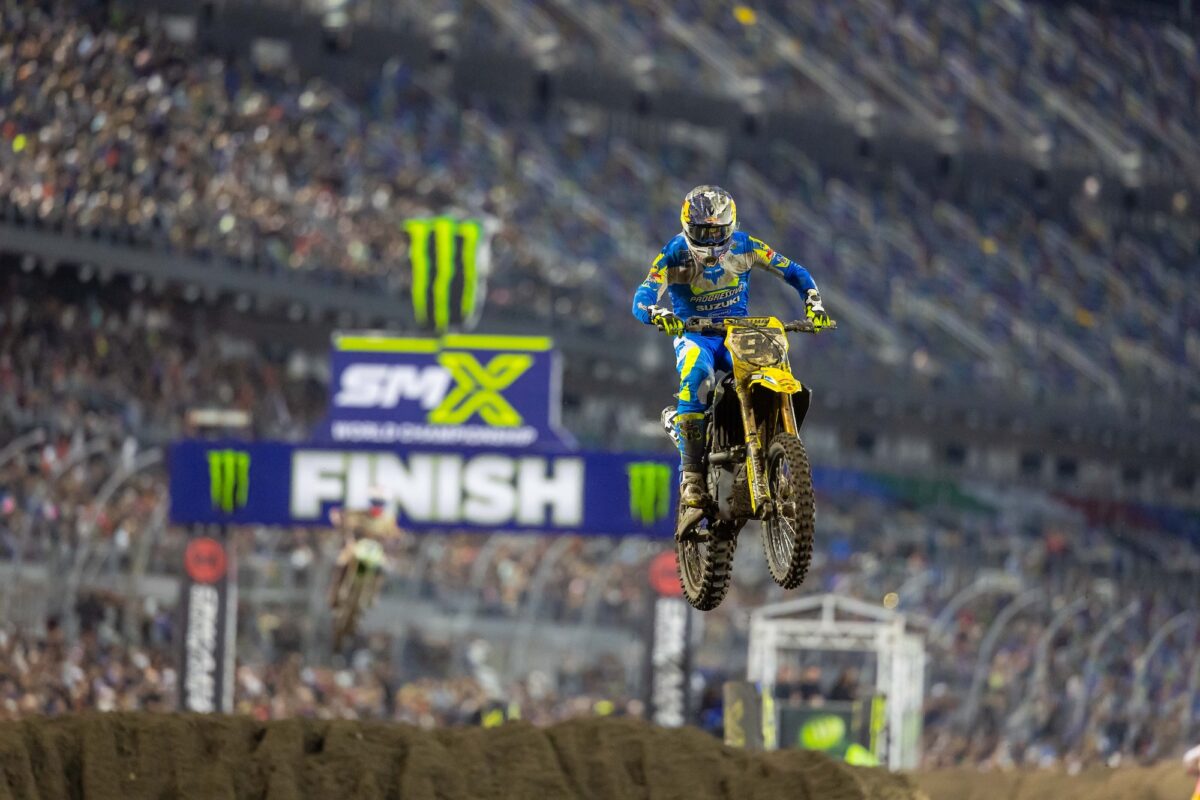 It wasn’t an easy path to victory for Tomac, as he began the 450SMX Class Main Event in fourth, behind each of his primary competitors in the championship. Honda HRC Progressive’s Hunter Lawrence, last week’s winner and current points leader, opened the 20 Minute + 1 Lap race with the holeshot, but was quickly passed by Progressive Insurance Cycle Gear Suzuki’s Ken Roczen. Monster Energy Yamaha Star Racing’s Cooper Webb, the defending series champion, slotted into third ahead of Tomac, which set the stage for a thrilling battle between the best in the class. As Roczen and Lawrence settled in out front, Tomac started his pursuit of the lead with an early pass on Webb for third. The top three continuously searched for faster lines on the ever-changing rutty, technical, sandy racetrack and sat within 1.5 seconds of one another with around 14 minutes remaining.