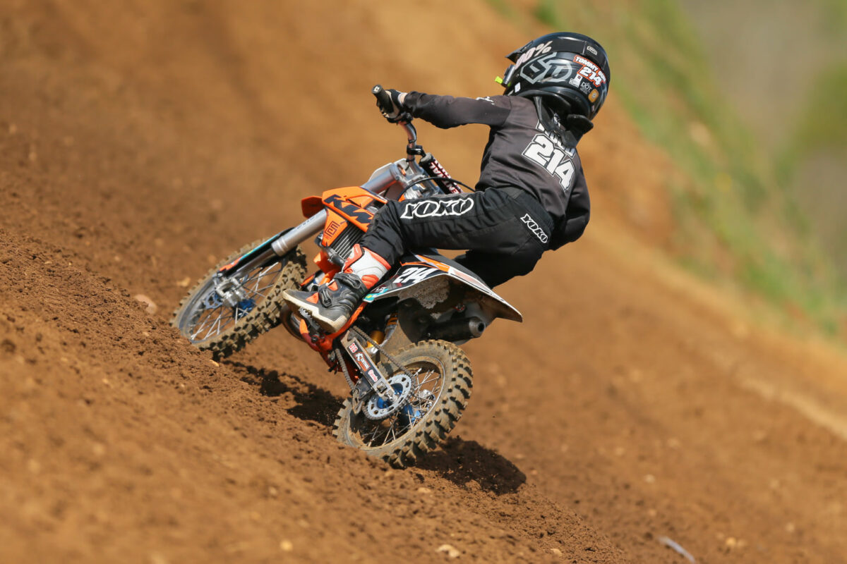 Big Wheel 85’s were up next with a clean sweep Kai Thorpe who took first place on the podium with results of 1,1,1. Fabian Junior Morrison claimed second spot on the day after going 2,6,2 with some dazzling riding skills. Third spot went to number Jacob Francis with his solid and consistent riding efforts. Results of 3,3,4 saw him take home third. Alfie Payne was in and around the front 3 all day but 7th in the first race meant he just missed out.