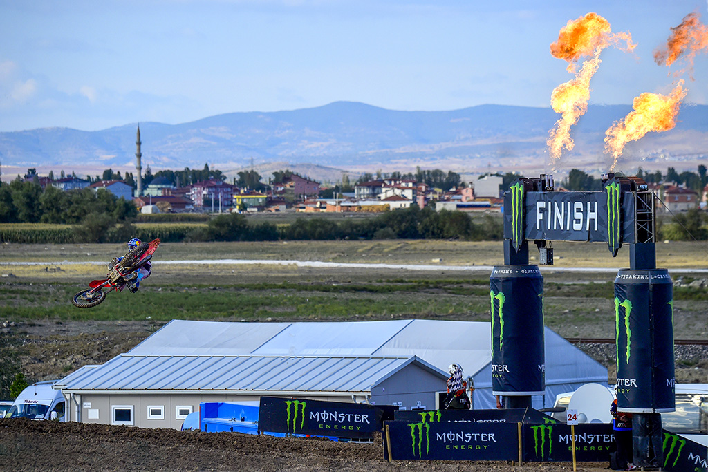 The hot sun continued to beat down on the Afyon Motor Sports Center as the MXGP of Türkiye hosted the crucial 18th round of the MXGP World Motocross Championships. The track crews worked feverishly to keep the track in the best possible condition, as a brisk wind conspired with the heat to dry the dirt and bake it hard.