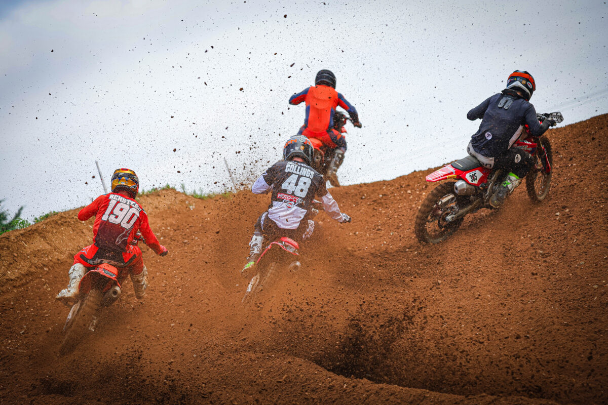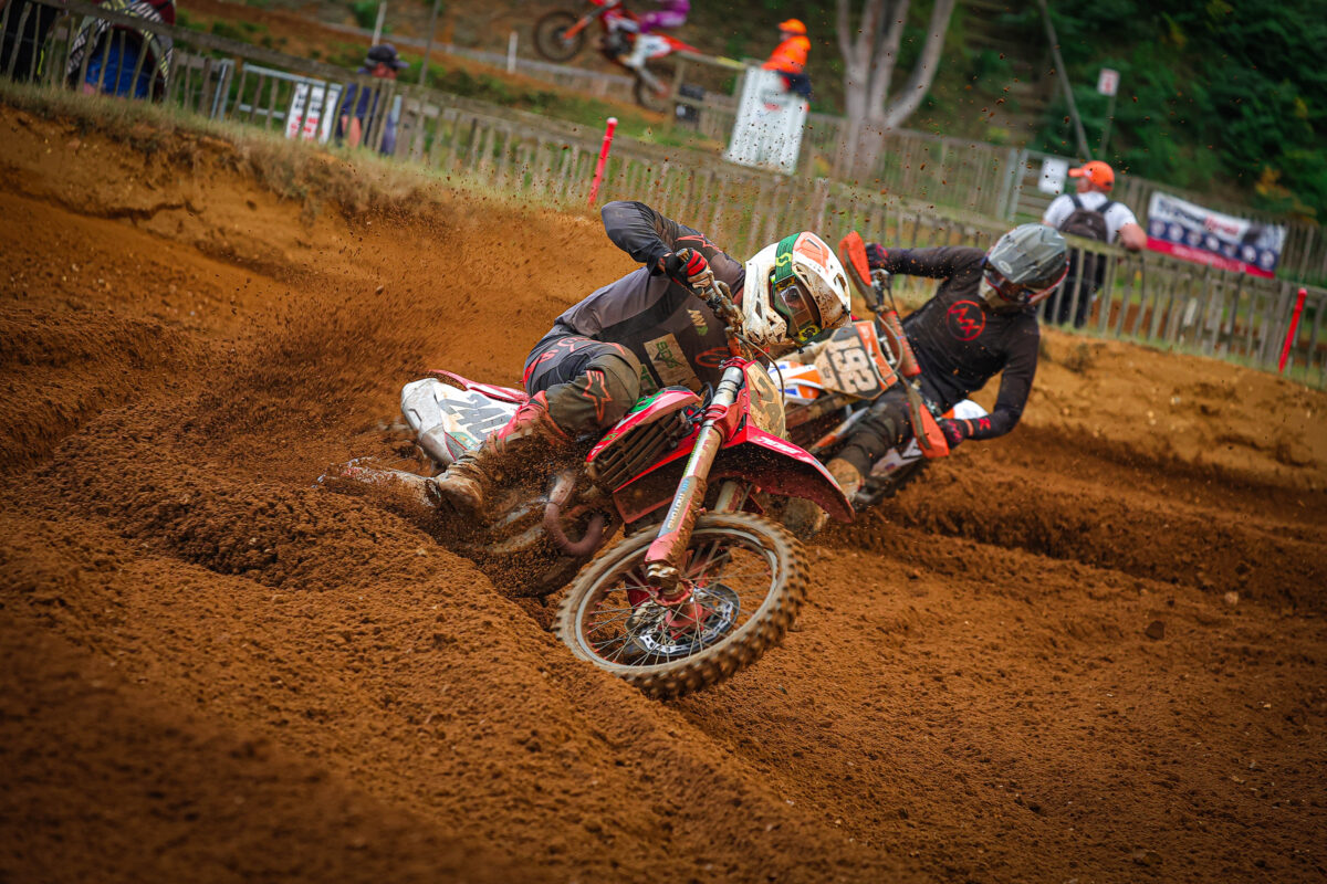 In race one of the Expert class, Tom Murphy stormed into the holeshot and the early lead with Callum Green close behind alongside Calum Mitchell and Shaun Southgate. Sam Nunn didn’t get the best of starts and fell on lap one leaving him with a lot of work to do while championship rivals were running up at the front end of the race. Murphy kept a consistent pace in the lead, while behind Calum Mitchell made his way past Green and into second halfway through the race. Max Broadbelt, unfortunately, had issues, meaning he dropped out of the top five, leaving Bayliss Utting to make his way through and onto the back wheel of Callum Green. Utting soon passed Green and got close to catching the top two on the final lap, but ran out of time, meaning Tom Murphy grabbed the race one win ahead of Mitchell in second, Utting was third with Callum Green in fourth and Travis Steels in fifth.