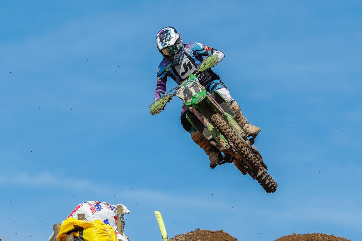 In front of a hugely expectant crowd the gate dropped for the final time at the French Grand Prix at Iffendic. Sensationally, Jason van Daele/Loet van der Putten made the holeshot their own after fighting the turn with Thomas Hamard/Mathis Hupon and stormed off down the hill with Vanluchene giving chase. Tim Prummer had another good start, with Prunier having a bit more work to do this time. Hamard was proving hard to pass and did himself proud in the early stages. Brett Wilkinson sat fourth, making the most of his AMS punch off the line, while once again, Koen Hermans left himself some work to do, but was better placed than in race one.