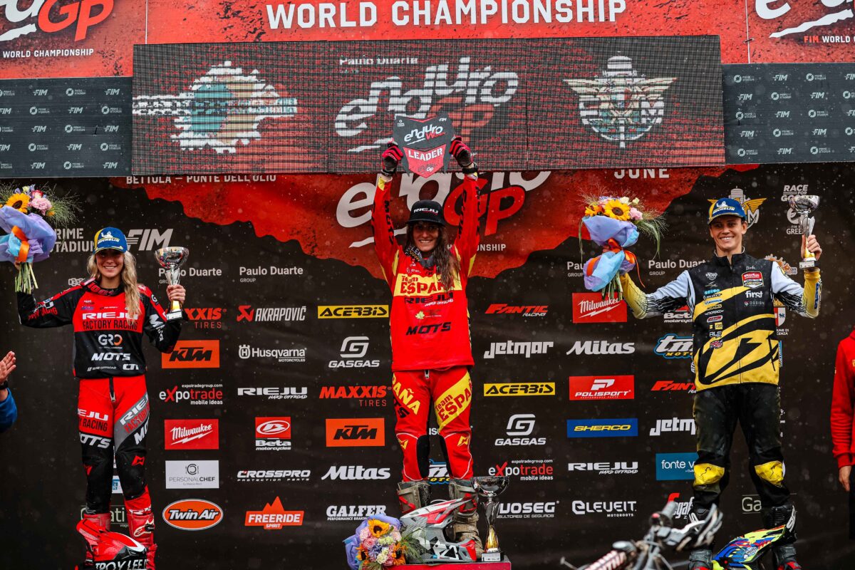 In the Enduro Women’s class, it was RIEJU Factory Racing’s Mireia Badia who mastered the mud to secure her second victory of the weekend in Bettola. The Spaniard was supreme as she made short work of the rutted MAXXIS Enduro Test and slippery ACERBIS Cross Test. Claiming a 56-second margin of victory, she was pleased with her efforts today.