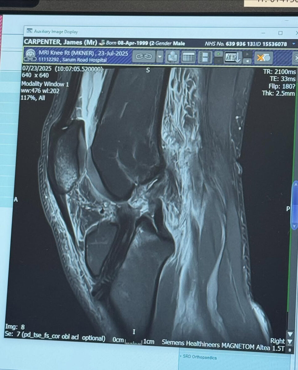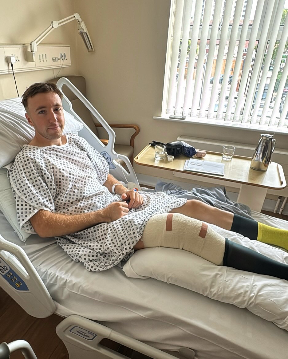 “Fresh out of surgery from my third ACL reconstruction, second time on this knee eight years apart. This time a bit more complicated due to the previous injury having to remove the previous graft that was hanging around in there and needing a different type of graft due to already having a hamstring graft out of both legs. I’ve also had a LET’s procedure involving extra reinforcements down the outside of the knee that will provide more stability.