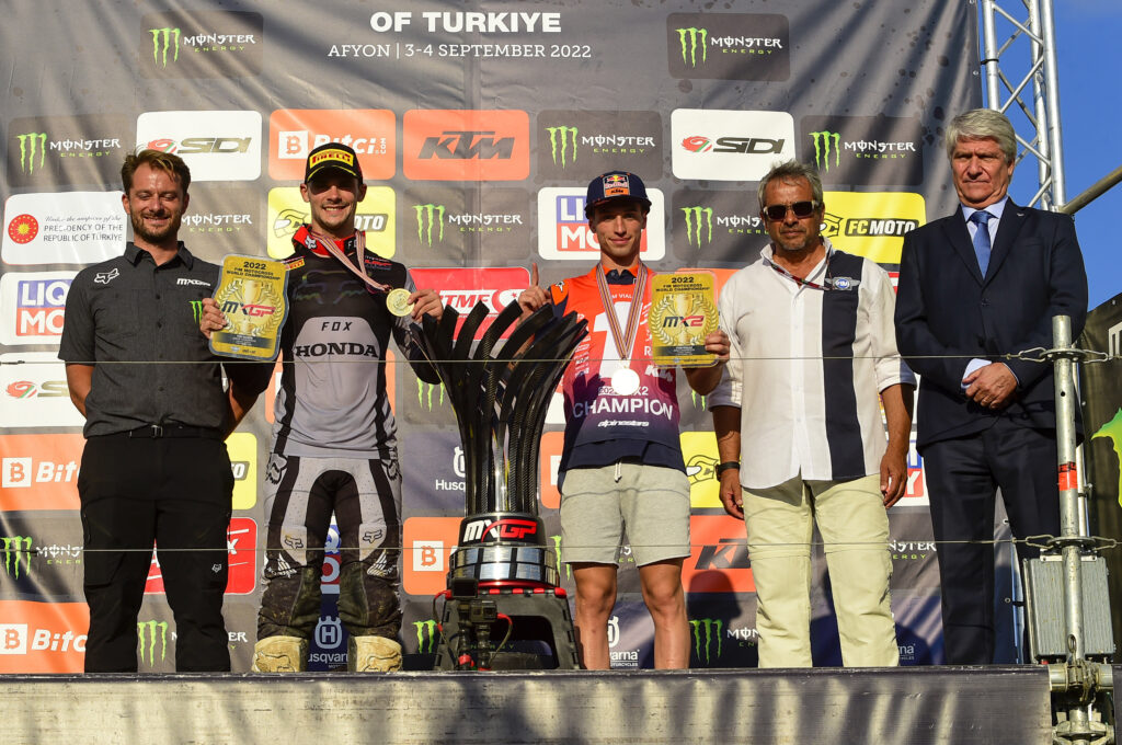 Meanwhile, in MXGP, Team HRC’s Tim Gajser rounded out his championship-winning season with his 10th Grand Prix victory, as Kawasaki Racing Team MXGP’s Romain Febvre made his first appearance on the box to place third overall. And there was more to celebrate, as Red Bull GasGas Factory Racing’s Jorge Prado battled his way to the bronze medal position, ending his very tough season on a positive note.