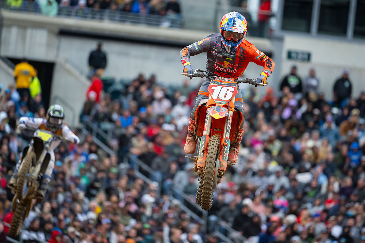 Red Bull KTM Factory Racing’s Tom Vialle both delivered an important second-place finish in Philadelphia’s 15th round of the 2024 AMA Supercross Championship, which enabled him to extend his advantage in the 250SX East standings with a single round remaining in the eastern region.