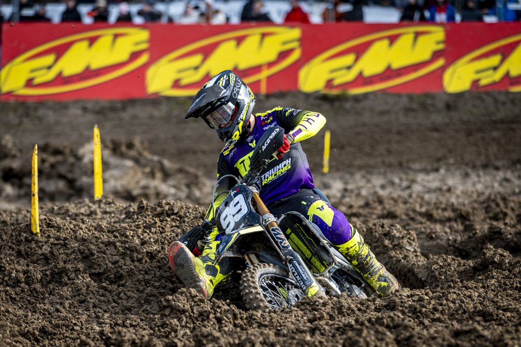 The established mud master did what was expected of him in the morning Warm-Up, as Liam Everts topped the timings, three-tenths ahead of last year’s GP winner Simon Längenfelder. Triumph Factory Racing Team’s incoming red plate holder Camden McLellan was third in the session.