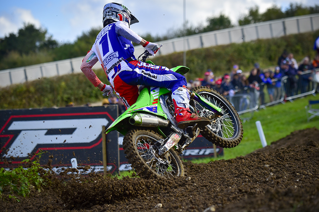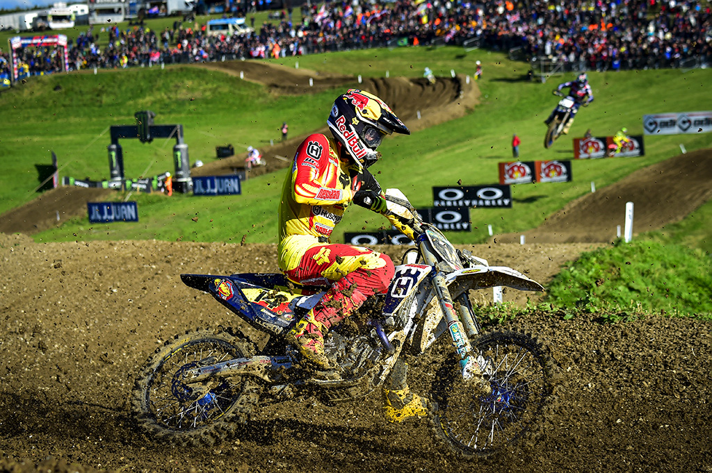 Webb, on unfamiliar 250cc machinery, dropped back to an eventual seventh, but Anstie was on the move, holding second ahead of the Nestaan Husqvarna Factory Racing duo Kay de Wolf and Lucas Coenen, who had used Team Belgium’s first gate pick draw to recover from a poor jump at the gate and salvage a good position on the first lap.