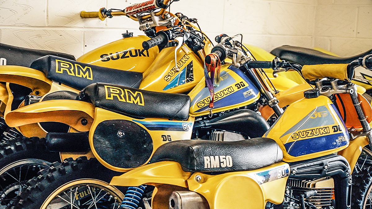 You may have seen 999lazer’s recent video about the mythical liquid cooled RM500, but that’s certainly not the only bike in Wayne Hillard’s crazy collection. Wayne is a massive fan of Suzuki and has pulled together one of the most comprehensive collections of Suzuki two-stroke dirt bikes we’ve ever seen. Max from 999lazer take us for a look around the collection!