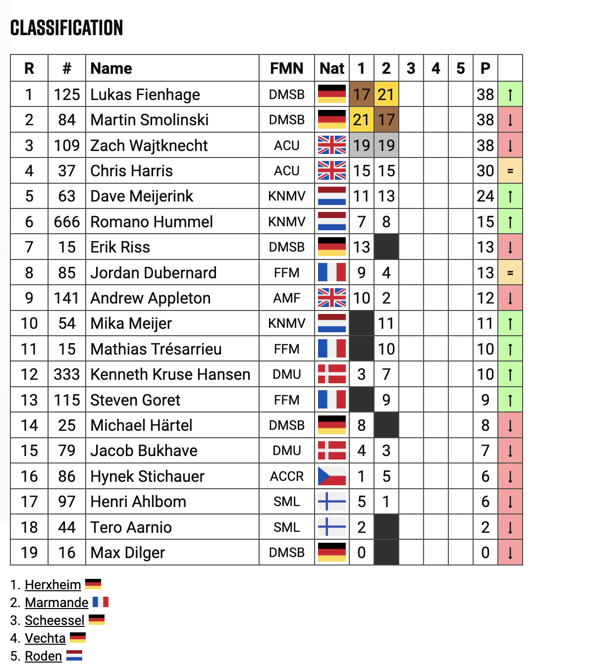 Fienhage and Wajtknecht both got off to winning starts in their opening Heat races along with Dave Meijerink from the Netherlands and the dynamic Dutchman then moved into the lead on his own when he defeated Fienhage and Smolinski in the second block of Heats after Wajtknecht dropped a point to 2021 champion Romano Hummel.