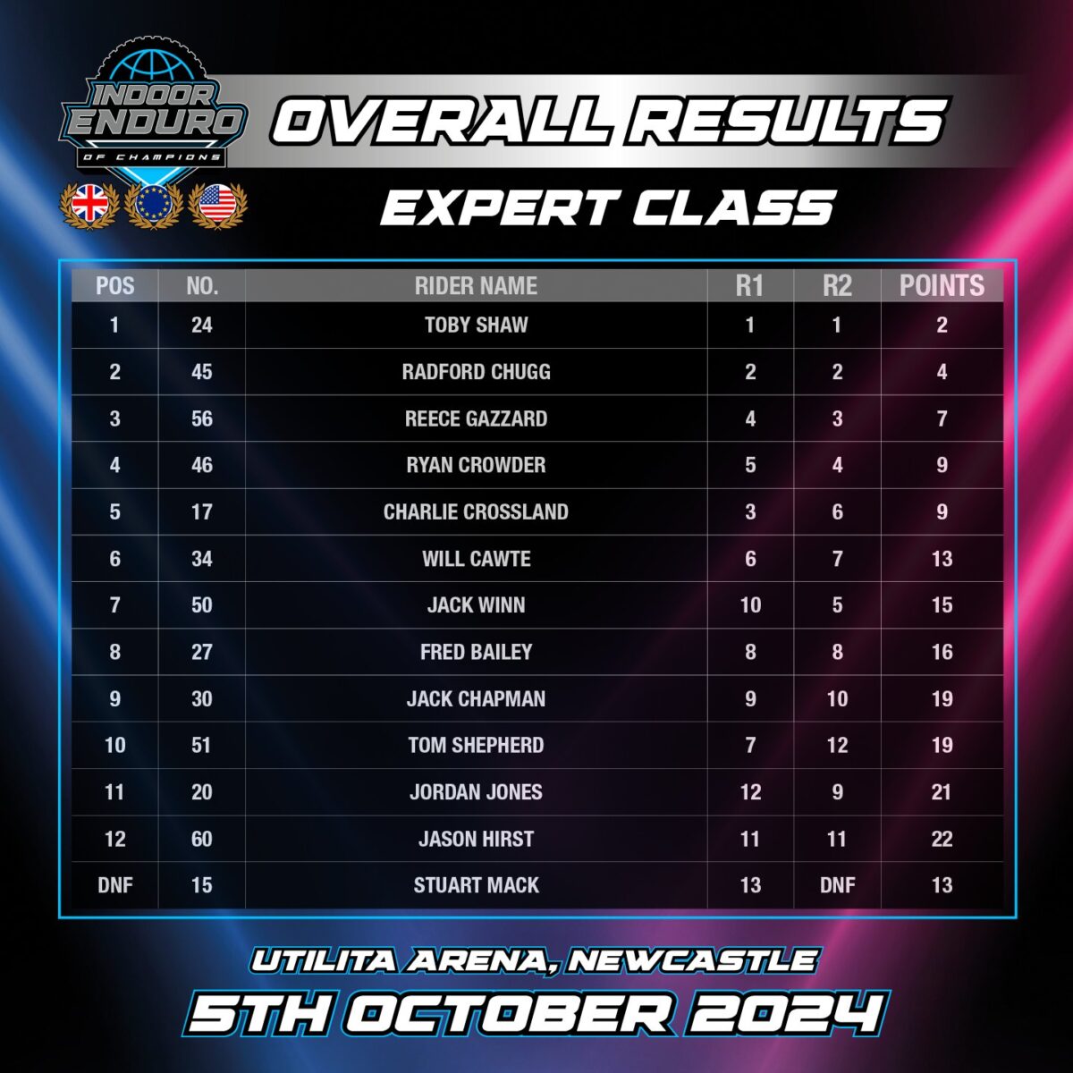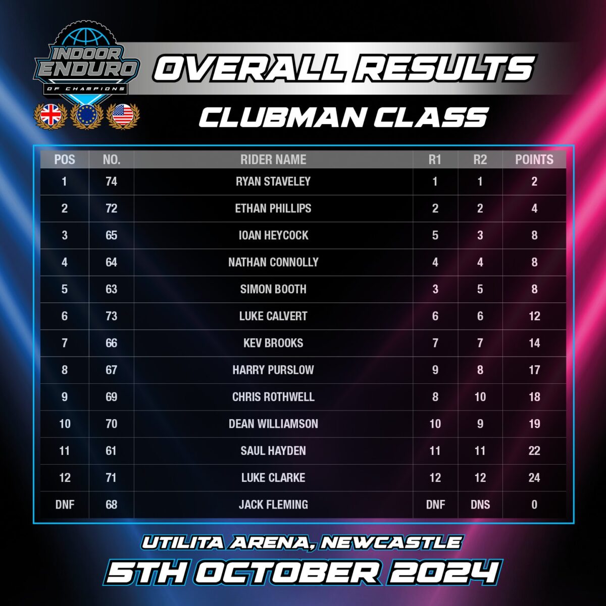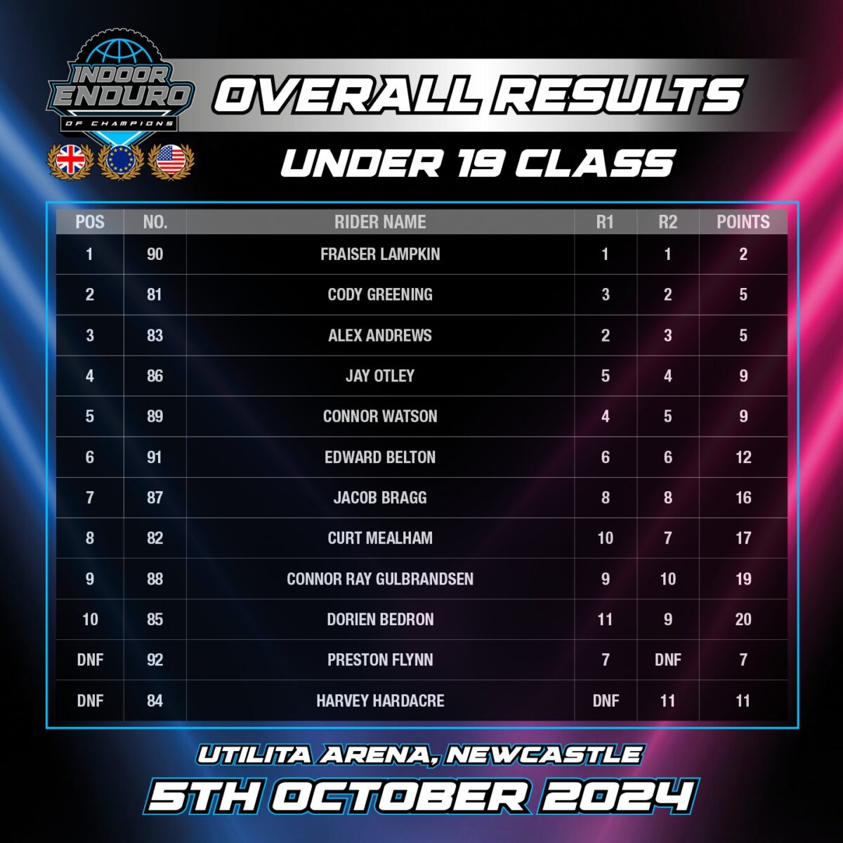 In the Under 19 class, Fraiser Lampkin took the title, while In the Expert class, Toby Shaw maxed out for the win. Ryan Stavely was another unbeaten rider, claiming the Clubman victory.