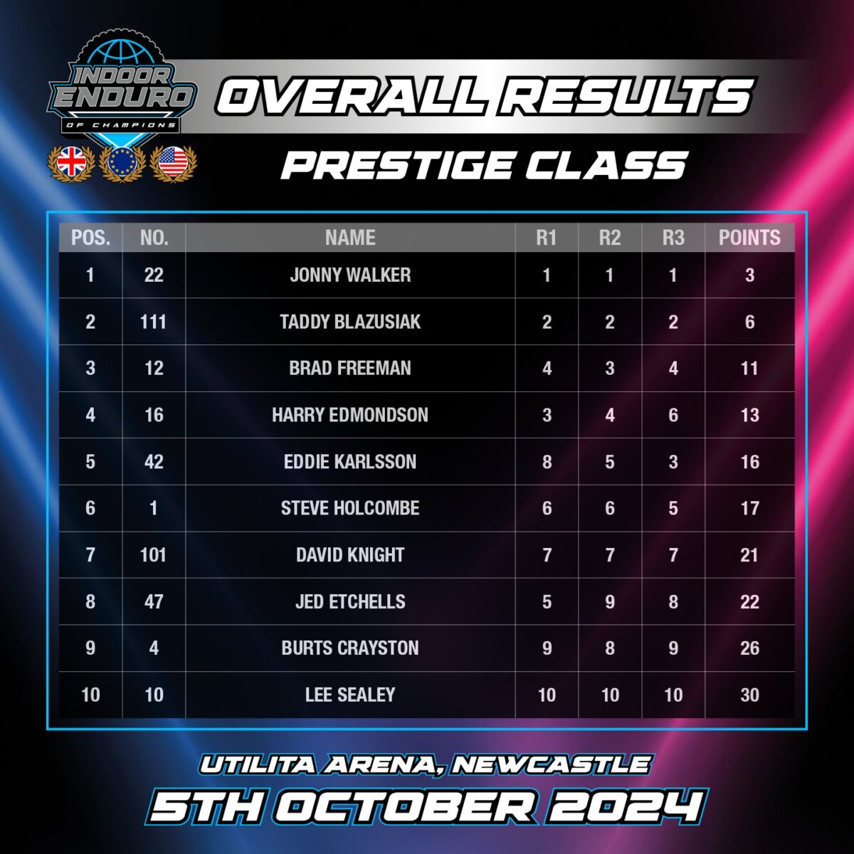 Last Saturday’s 2024 Indoor Enduro of Champions went down a storm inside the Utilita Arena in Newcastle. New Triumph Racing signing Jonny Walker stole the show, winning the Prestige class with three wins from three over Polish Hard Enduro star Taddy Blazusiak and EnduroGP rider Brad Freeman.