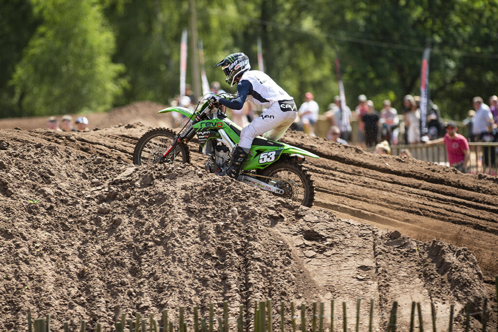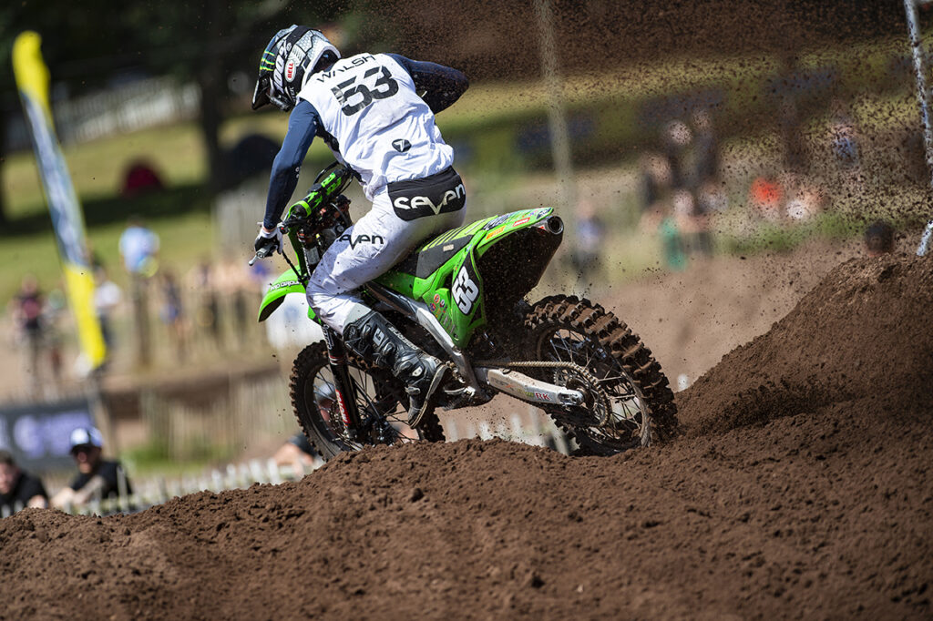Team Revo Seven Kawasaki rider Dylan Walsh battled for the MX2 Elite class victory at the historic Hawkstone Park venue during round 5 of the Michelin MX Nationals on Sunday.