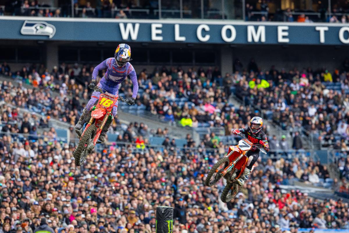 Monster Energy Yamaha Star Racing’s Cooper Webb took a thrilling win at Lumen Field in Seattle to nab his third win of the season at Round 11 of the 2024 Monster Energy Supercross season. The win marked the slimmest margin of victory so far this season as 58,342 fans cheered Webb and Red Bull KTM Factory Racing’s Chase Sexton to the finish line.