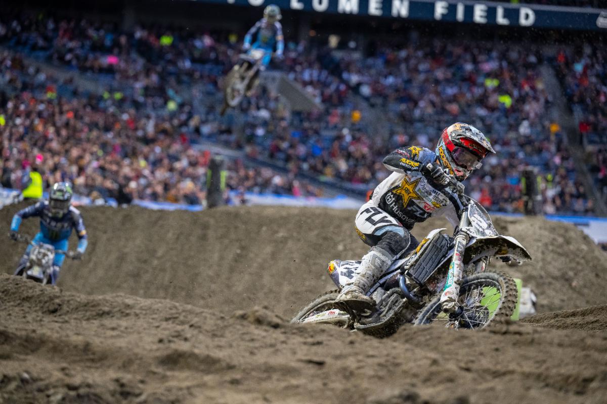 The Western Regional 250SX Class passed its season midpoint with Seattle marking Round 6 of 10 rounds. Levi Kitchen made the technical track look almost easy with a win margin of over twenty seconds. Rockstar Energy Husqvarna Factory Racing’s RJ Hampshire fought back from a mediocre start to claim second place. Team Honda HRC’s Jo Shimoda was blazing fast, recovering from a crash to lock down the third-place spot.