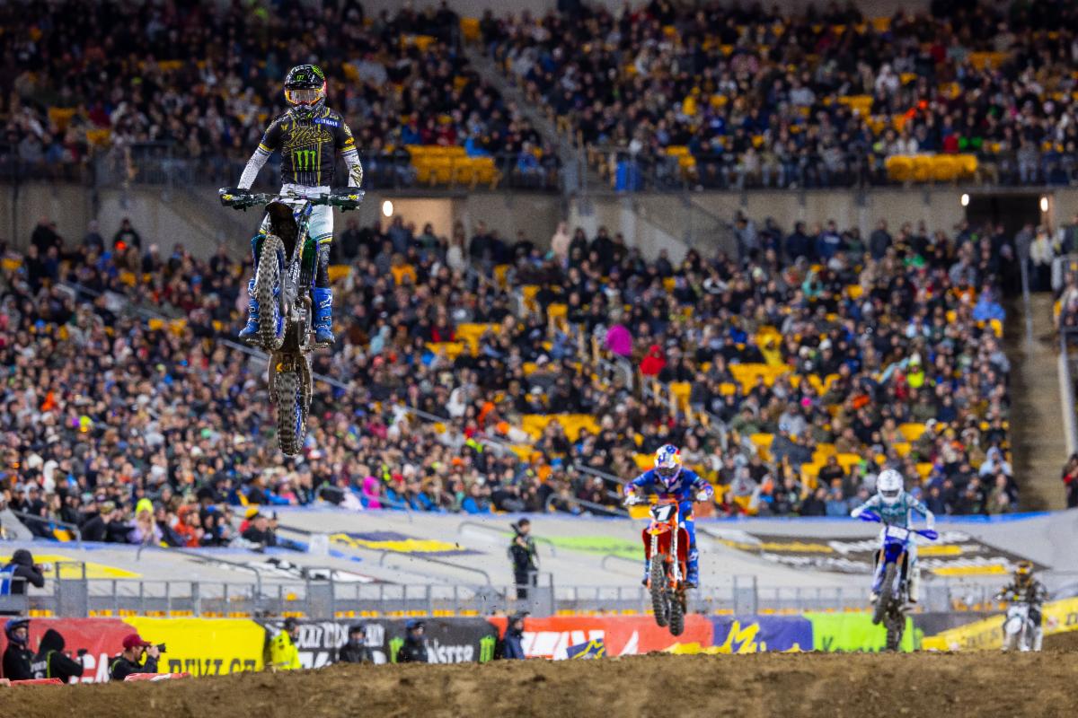 Monster Energy Yamaha Star Racing’s Cooper Webb withstood heavy pressure to earn his fifth win of the 2025 Monster Energy AMA Supercross Championship. The Pittsburgh Supercross victory helped secure Webb’s points lead with two rounds remaining on the season.