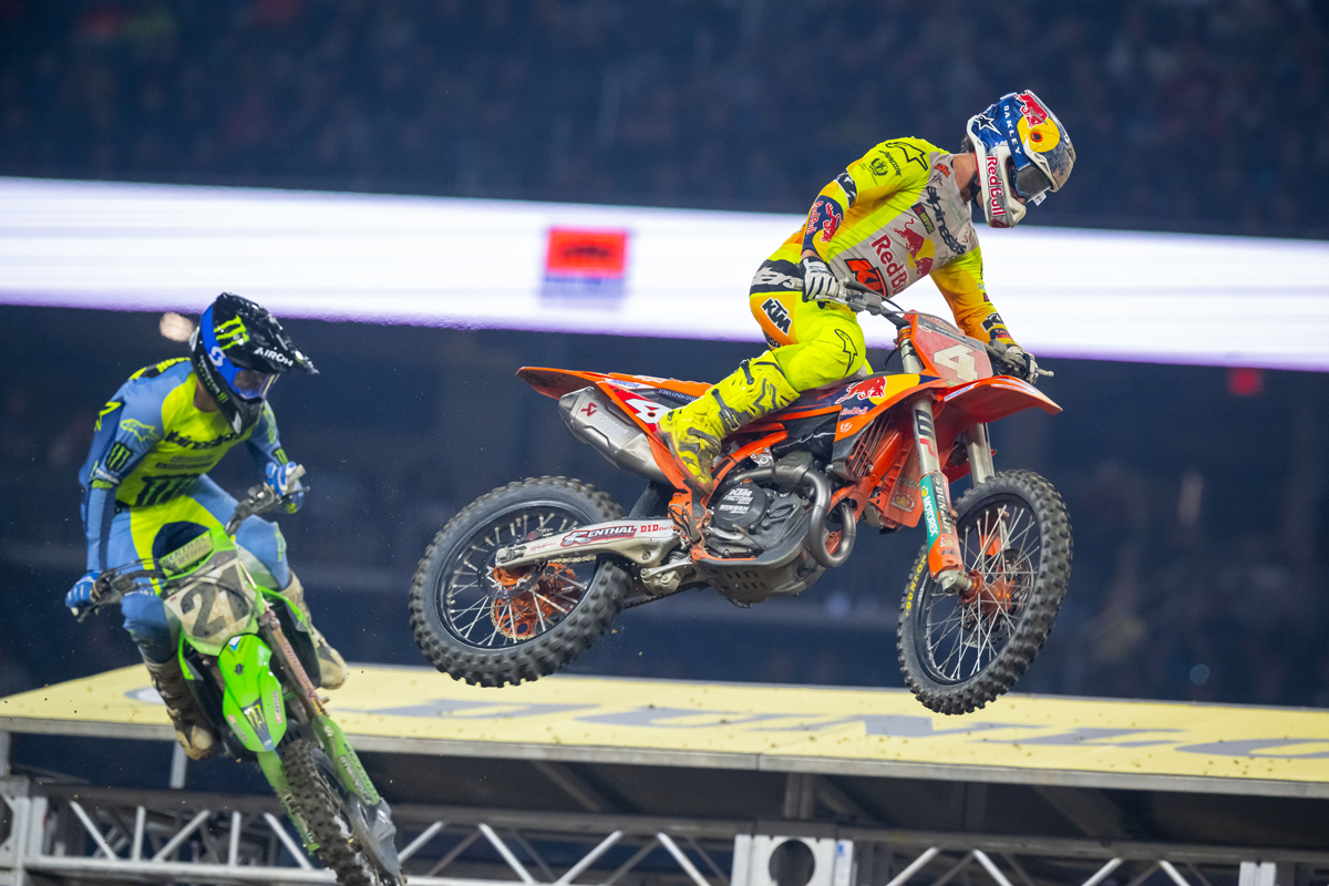 “I really liked where I was by lap three, when I got around Aaron [Plessinger] and was with Kenny. I knew he was riding well today so it was going to be a good pace, and we had some good laps… He felt the pressure and rode well all through the Main Event. I was trying hard, and he picked up on some of my lines. It was a tough Main Event… I’ve been in that position before and it felt great. I’m stoked to get that first win, get the red plate. It just felt awesome.” – Cooper Webb, when asked at what point he felt he had the win.