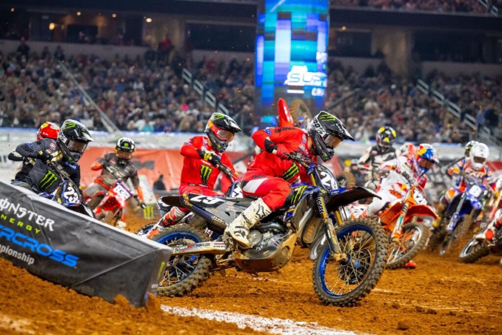 Team Honda HRC’s Chase Sexton took the second place spot with a night of big highs and some frustrating lows. Monster Energy Yamaha Star Racing’s Eli Tomac went home with third place points at the event directly following his announcement that he will postpone his retirement and compete in the entire 2023 SuperMotocross World Championship series. In the Eastern Regional 250SX Class, Monster Energy Yamaha Star Racing’s Nate Thrasher took the victory with plenty of action and drama en route to 2-2-3 race finishes.