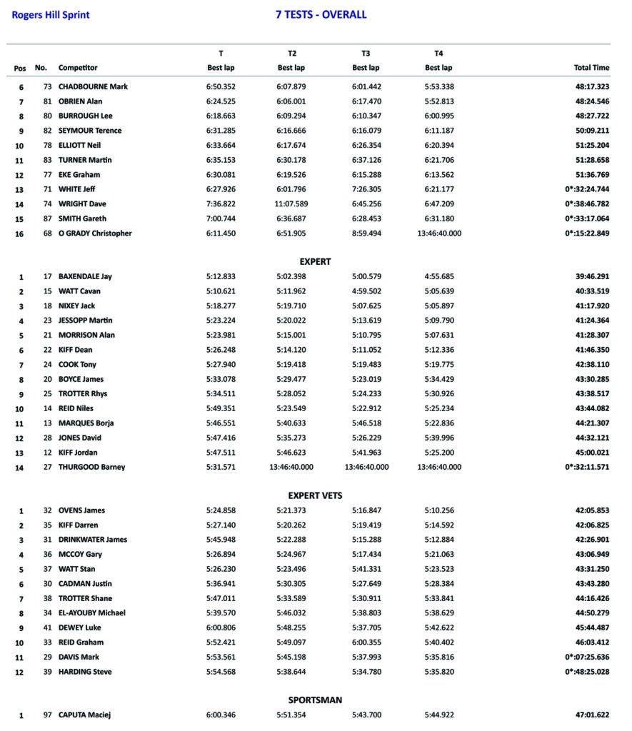 In the Expert vets’ class, there was also a close battle for 1st place, with James Ovens taking the win over Darren Kiff by only a second over the 8 tests! In third place was James Drinkwater who managed to acrew enough points to take the Expert vets championship win.