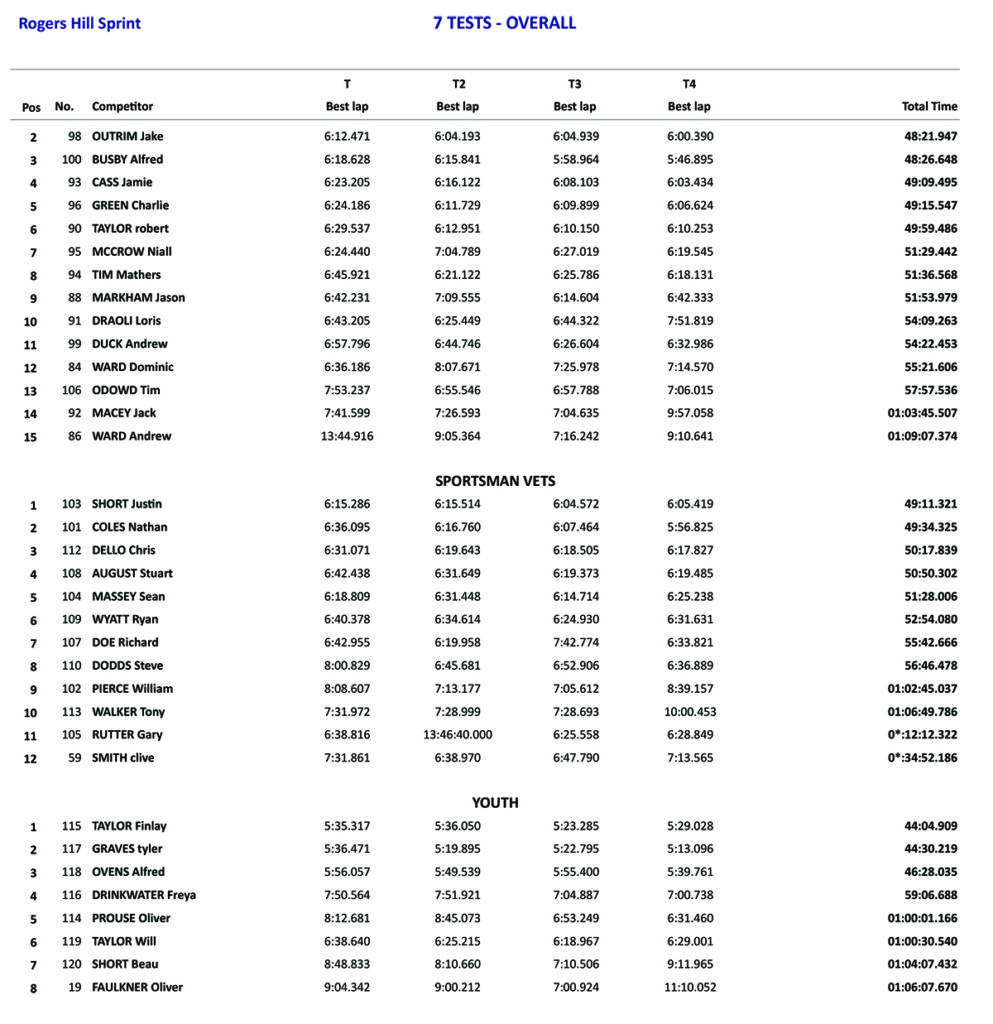 A special thanks to Pete Coles and Chester for running the sprints. Marcus for everything! The marshals, Craig, Boyce, Wardie, Dave S, Dave K, Simon and Wayne! Also Brad, Stevo, Boyce, Stan, Cav and Justin for helping with track prep and clearing.