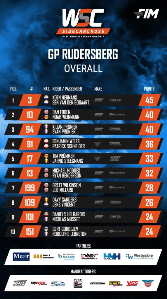 Tim Prummer/Jarno Steegmans were then battling in third with Benny Weiss and Patrick Schneider. Still Mike Hodges held the lead, but then Dan Foden wore him down and assumed control. Both Hermans and Prunier had to conquer all these teams ahead, as Prunier had Hermans matching his every move in what was one of the most thrilling races for a very long time.