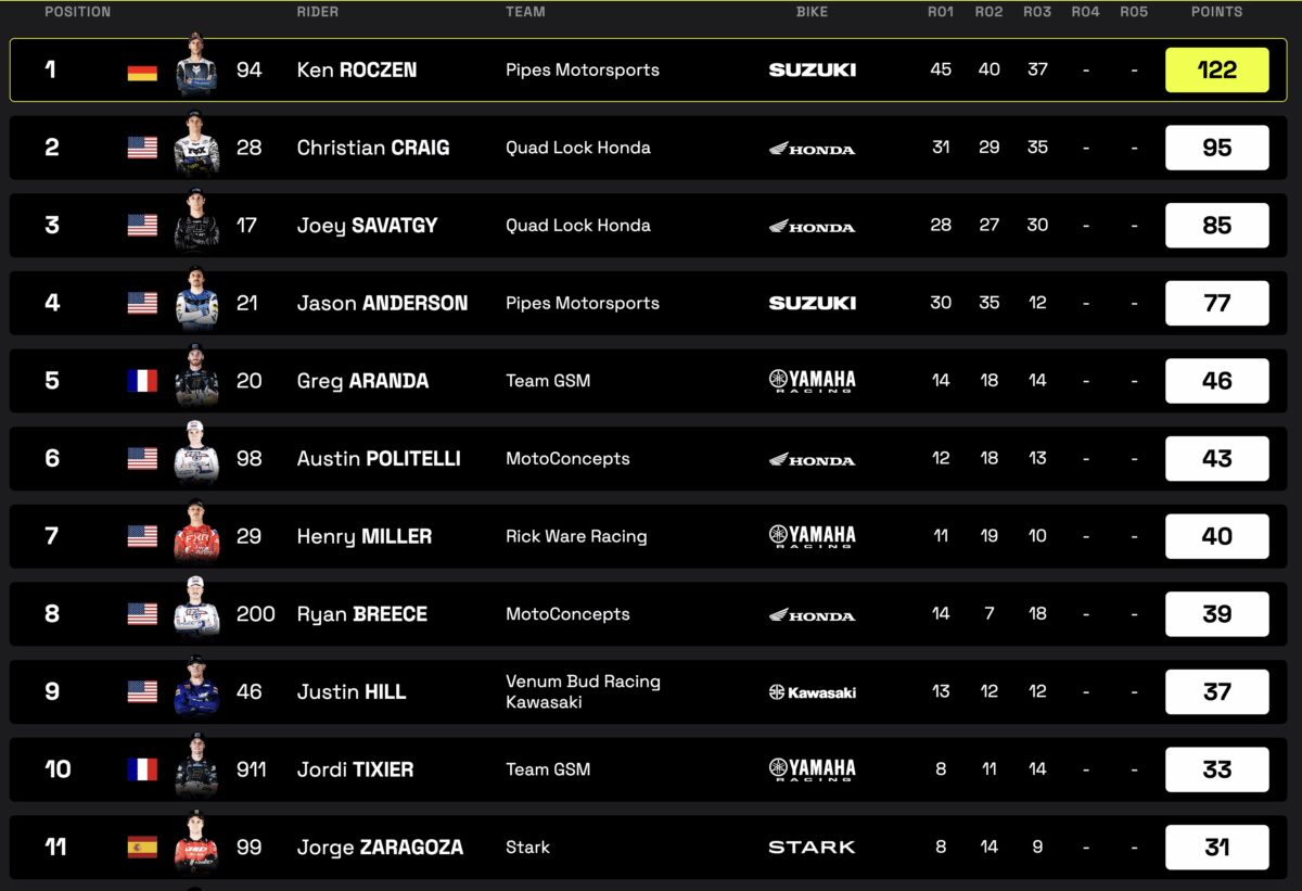 In SX1, the title picture is much less settled. Christian Craig, Jason Anderson, and Joey Savatgy are all firmly in contention as the championship intensity rises. Stockholm is expected to deliver close-quarters racing as all three riders work to maintain or improve their standing ahead of the last round. The Swedish GP also carries considerable weight in the team competition. Quad Lock Honda hold a narrow lead over Pipes Motorsports Suzuki, with Team GSM hot on their heels in third.